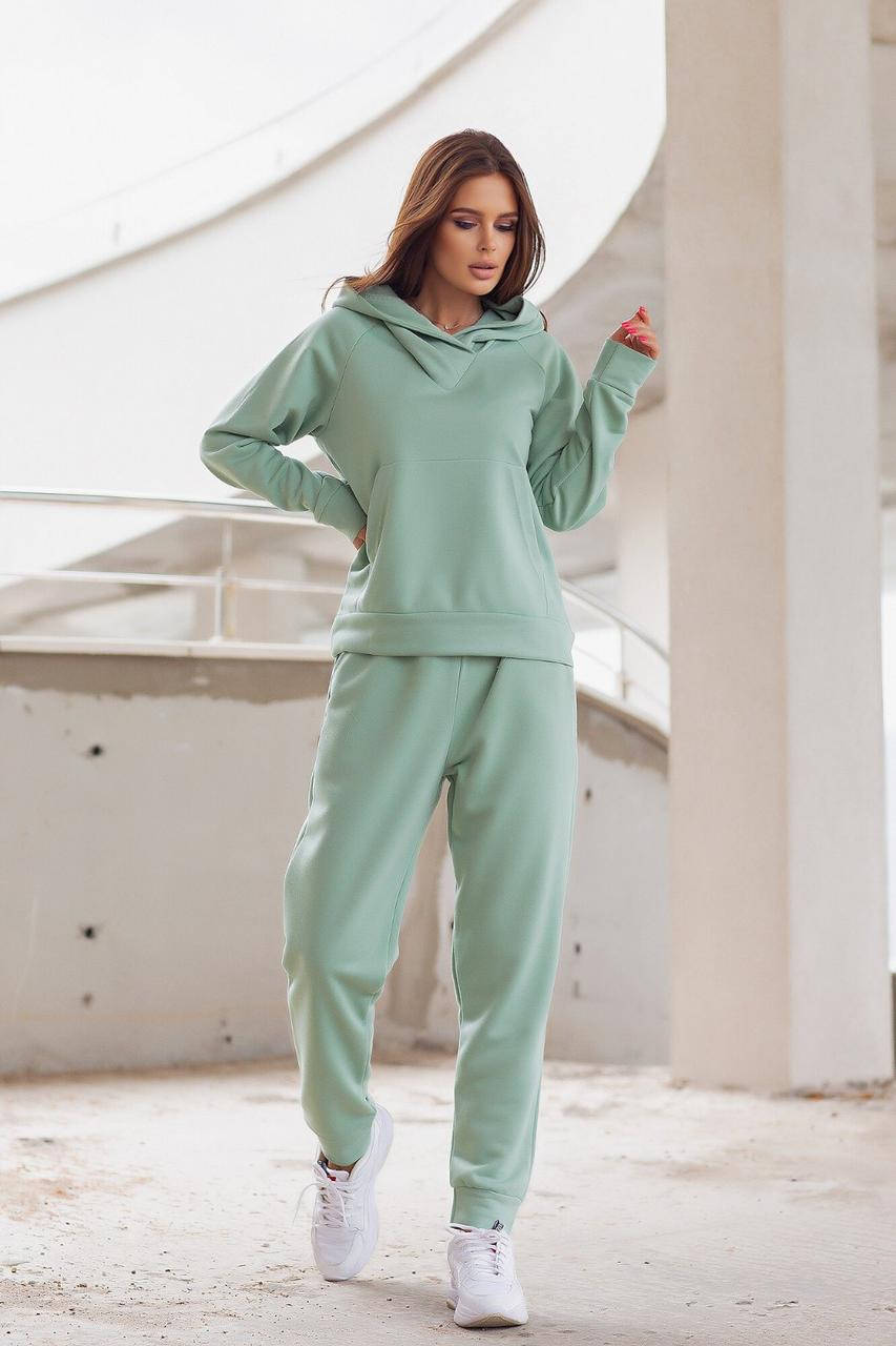 Стильный женский костюм прогулочного стиля. Материал - мягкий турецкий трикотаж "петля". Свободный батник с удобным глубоким капюшоном и карманом кенгуру. Свободные брюки комфортной средней посадки. Широкая резинка и прорезные боковые карманы. Универсальная вещь в Вашем гардеробе.