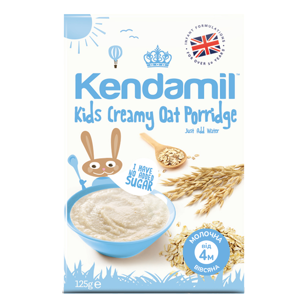Молочная сливочная овсяная каша Kendamil с витаминизированным цельным коровьим молоком, без искусственных ингредиентов и сахара, для детей с 4 месяцев и вегетарианского питания.