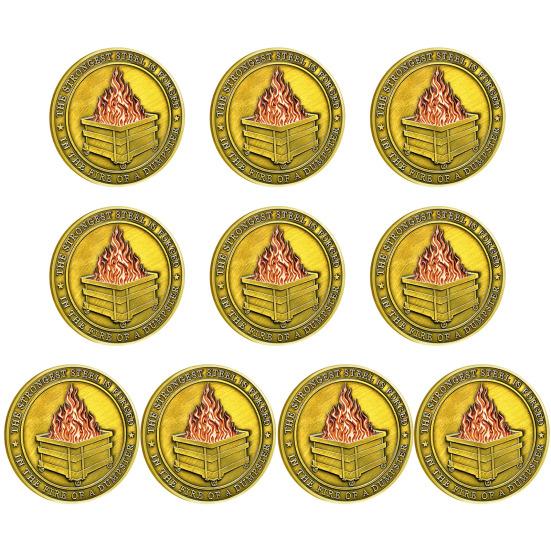 Монета «Пламя мусорного контейнера», двухсторонняя резная металлическая памятная медаль, круглая коллекционная монета, украшение для домашнего офиса 10 pcs