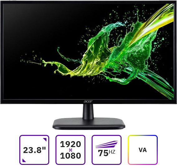 Монитор 23.8" Acer EK240YCbi VA, 1920x1080 (16:9), 250кд/м2, 5мс, 178°/178°, FreeSync, VGA, HDMI, черный (UM.QE0EE.C01), EK240YCbi