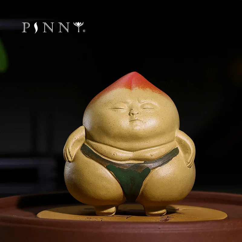 PINNY Purple Clay Peach Cartoon Statue Tea Pet Ceramics Esculturas Estatuetas Decorative Statues For Home Tabletop Handcrafts