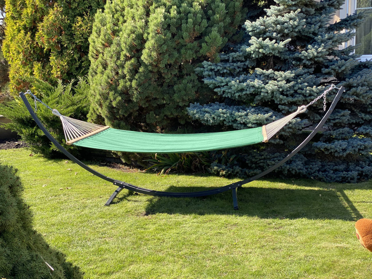 Каркас стойки подходит для всех типов гамаков: одноместного, двухместного, семейного. В комплекте со стойкой предоставляется весь необходимый комплект крепежей для сборки стойки и установки гамака.