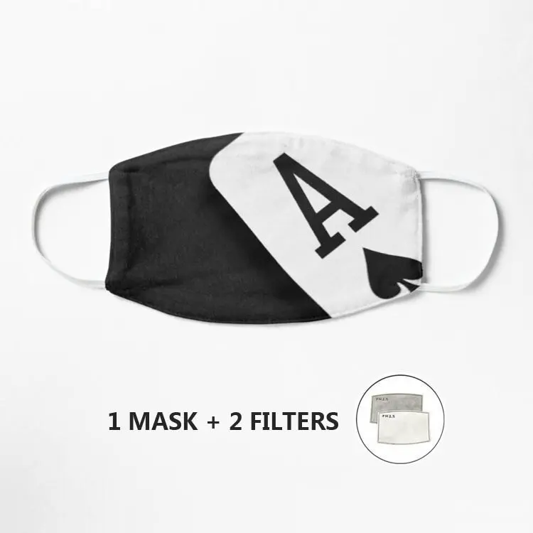 Монохромная маска для игральных карт Ace of Spades, модная Тканевая маска для взрослых с фильтрами