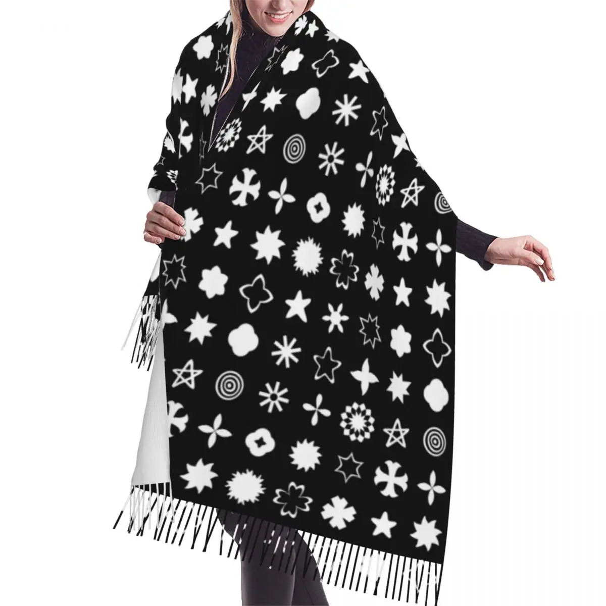 Монохромный шарф Y2K со звездами, шарф для женщин, Длинная зимняя теплая шаль с кисточками, модные Универсальные шарфы унисекс