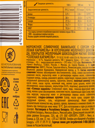 Мороженое Магнат Double Соленая Карамель с кусочками молочного шоколада 310 г