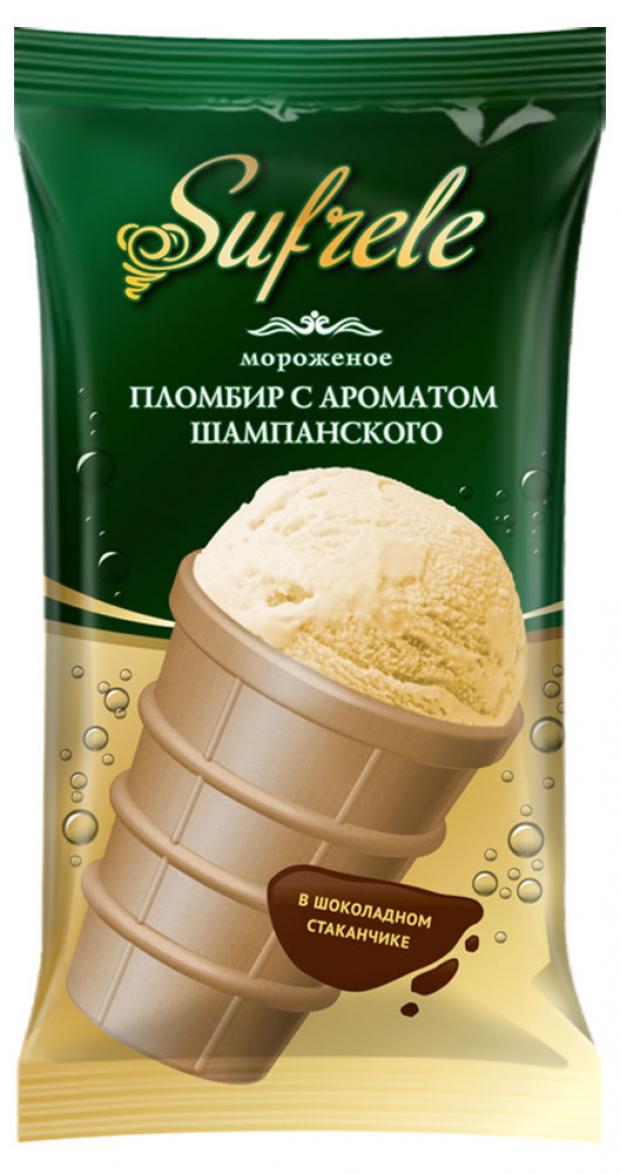 Пломбир с ароматом шампанского «Sufrele» в вафельном шоколадном стаканчике