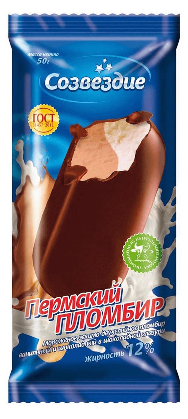 Мороженое Созвездие Пермский пломбир эскимо ванильно-шоколадное 50 г