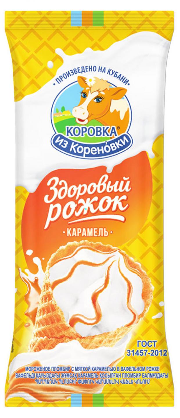 Мороженое пломбир «Коровка из Кореновки» в вафельном рожке с мягкой карамелью, 120 г