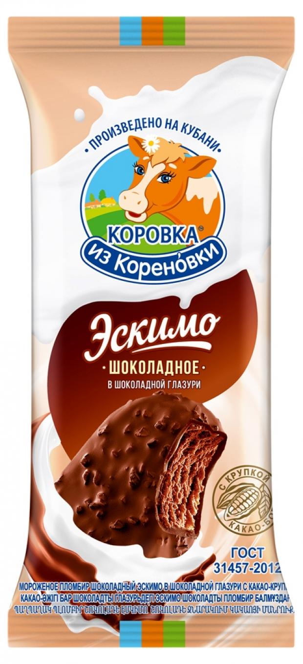 Мороженое пломбир «Коровка из Кореновки» шоколадный в шоколадной глазури с какао-крупой, 70 г