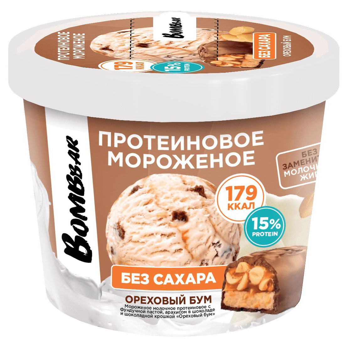 Мороженое протеиновое Bombbar Ореховый бум без сахара халяль 6% БЗМЖ, 150 г