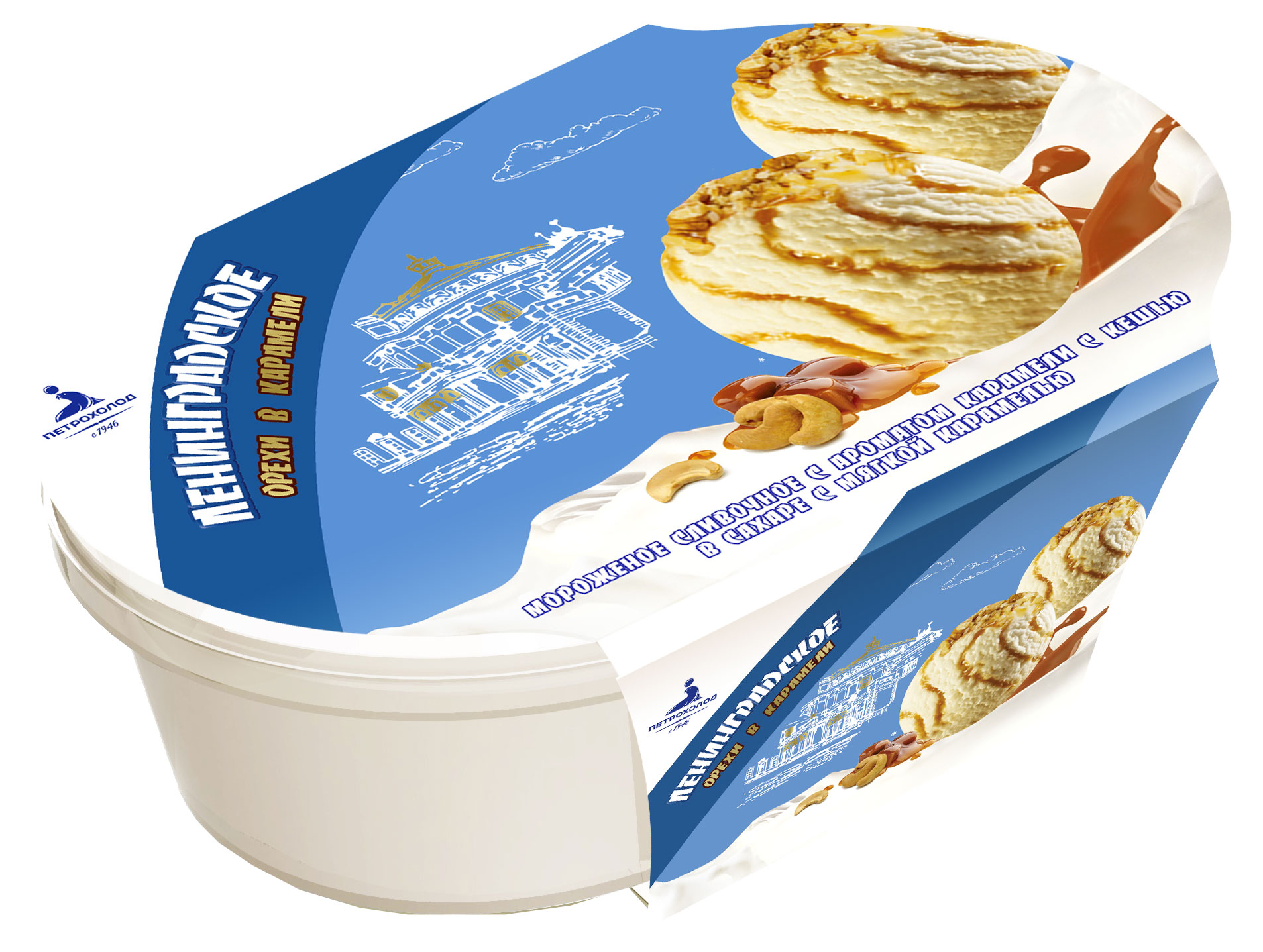 Мороженое сливочное Ленинградское с ароматом карамели с кешью в сахаре с мягкой карамелью, 450 г