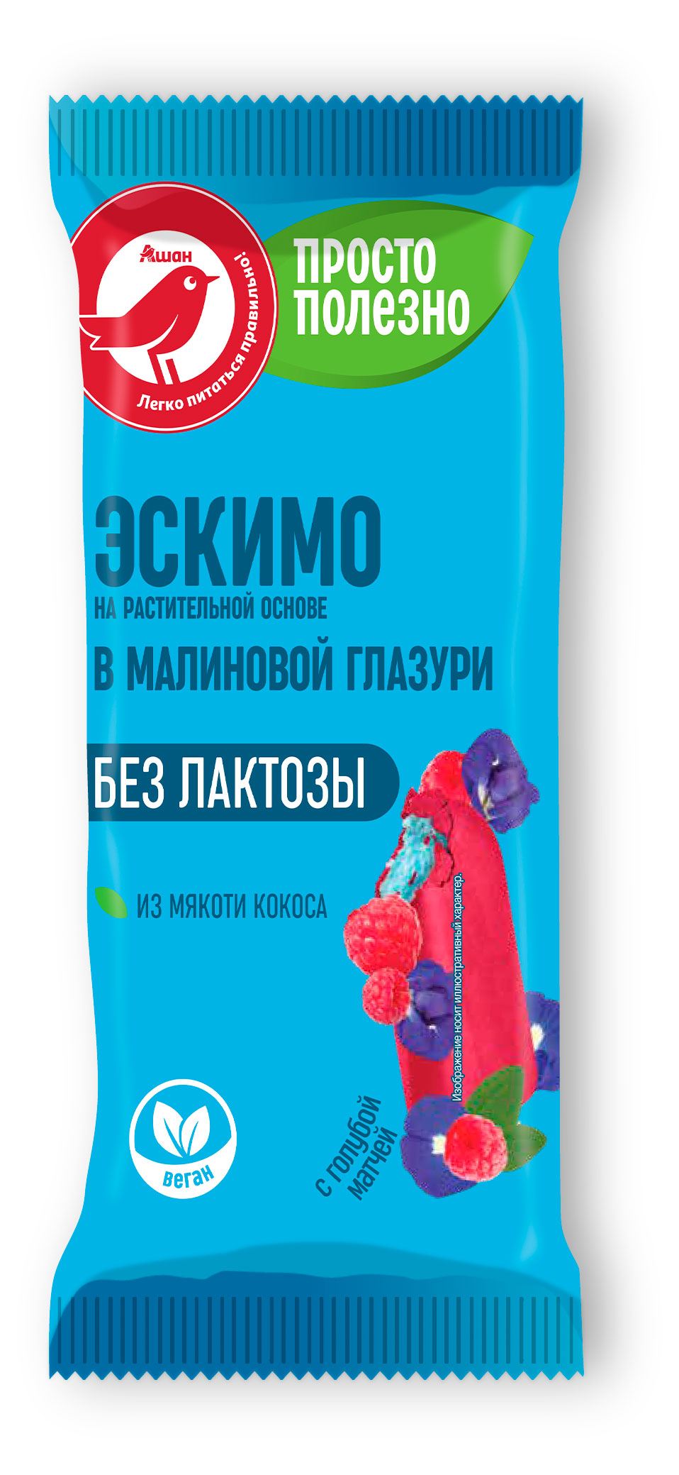 Мороженое эскимо АШАН Красная птица Vegan голубая матча в малиновой глазури без лактозы на растительной основе, 50 г