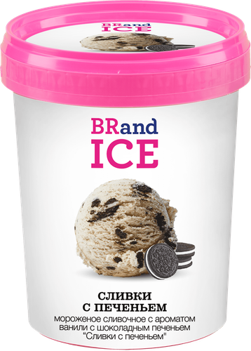 Мороженое BRandICE печенье со сливками сливочное ванильное с кусочками шоколадного печенья 15% бзмж 600 г
