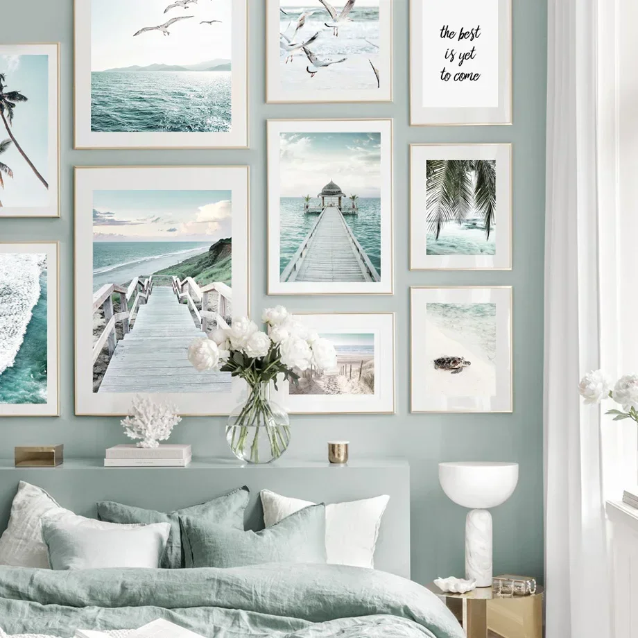Морская Пальма лист деревянный мост пейзаж настенная Картина на холсте скандинавские постеры и принты картины для гостиной Декор интерьера