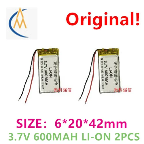 Новая полимерная литиевая батарея с полной емкостью 3,7 в, 2 шт., 602042 600 мАч, GPS-интерфон/оборудование/микронавигатор на солнечной энергии