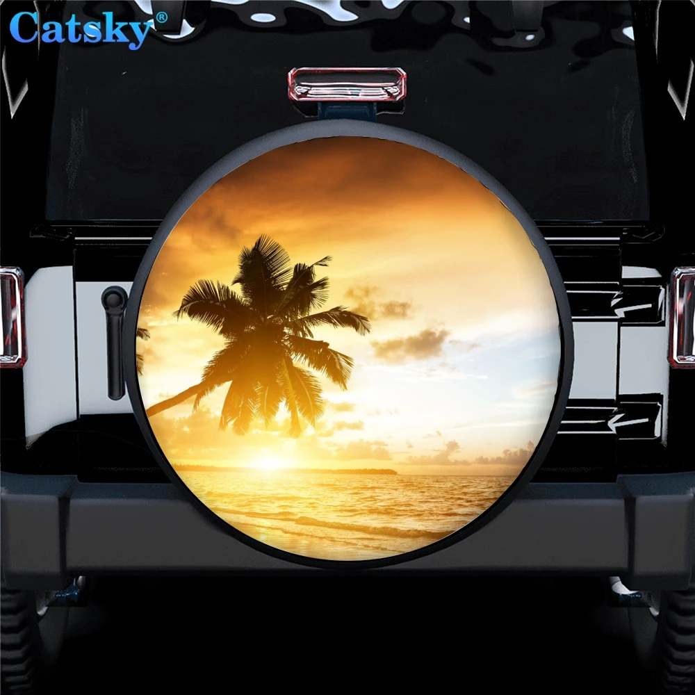 Морское побережье, закат декоративная крышка для запасных автомобильных шин, крышка для запасных шин для кемпера, защитная крышка для запасных шин SUV без отверстия для резервного копирования