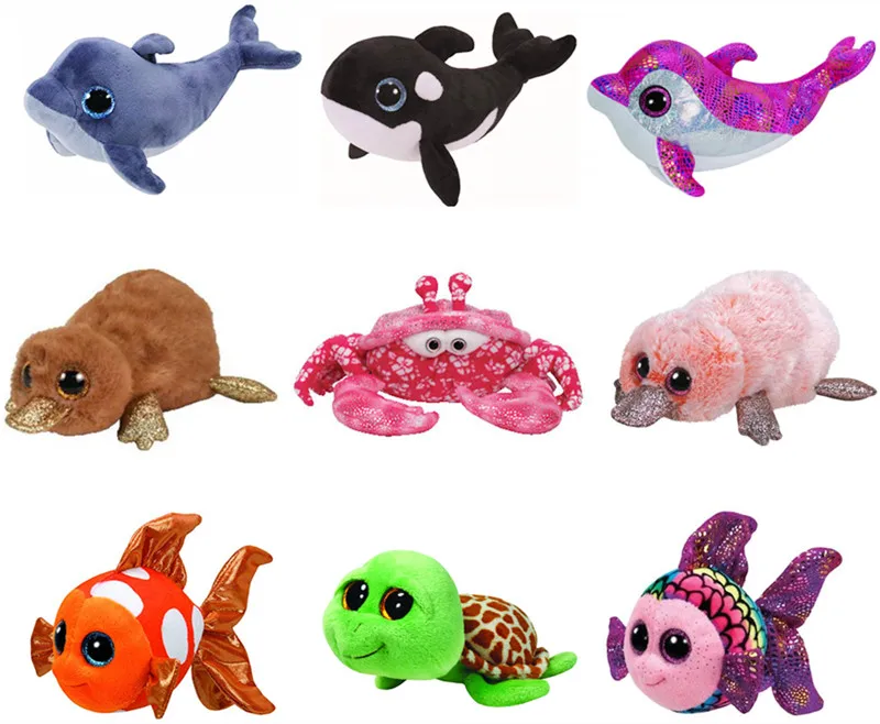 Морской Кит, дельфин, платипус, черепаха, краб, Золотая Рыба, обычная милая плюшевая игрушка, большие глаза, мягкие животные, 15 см, детские игр...