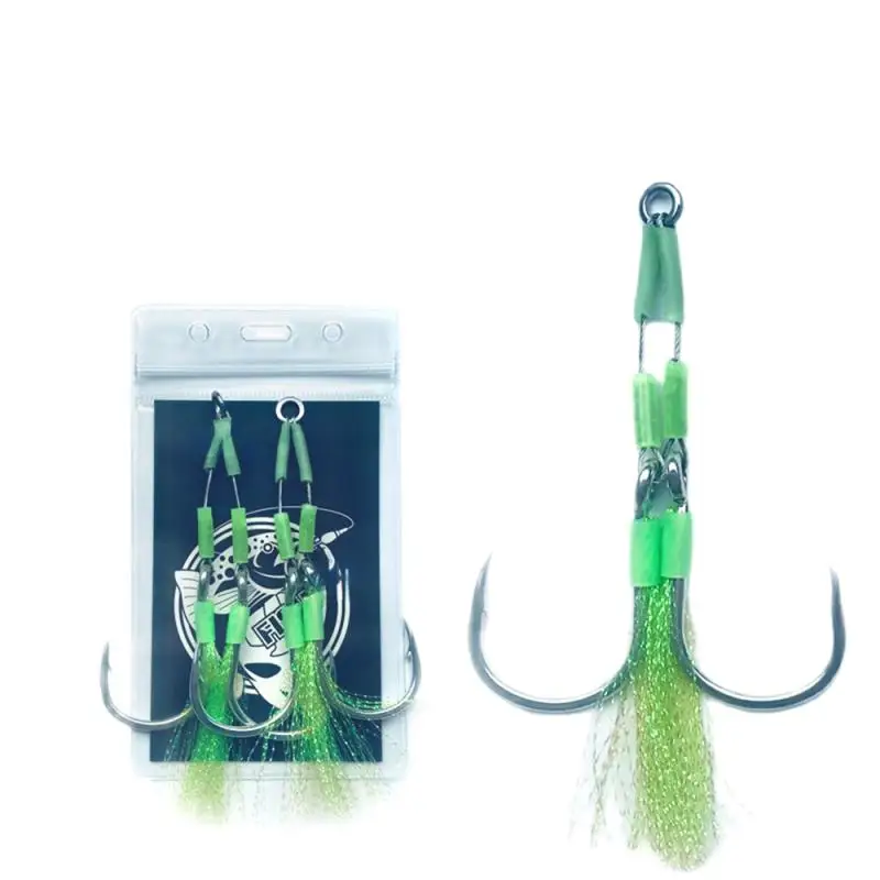 Морской крючок для морской рыбалки, яркий Шелковый двойной крючок, проволока из нержавеющей стали, светящийся крючок Luya, крючок острый и острый