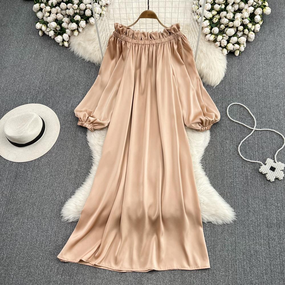 Морской отдых, мода, нежный стиль, свободное платье трапециевидной формы с длинными рукавами и открытыми плечами