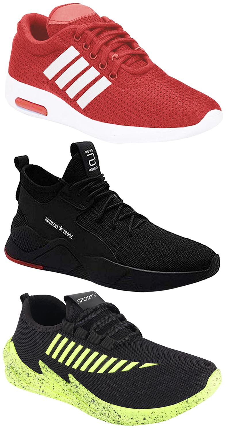 Birde Men Multicolor Mesh Canvas Casual Sports Sneakers Runnning Shoes for Men s Boy s - UK10 (Combo of 3)