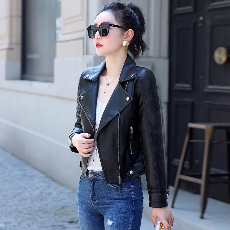 Мотоциклетная кожаная куртка женская короткая стираная кожа весна новая кожаная куртка короткая женская весенне-осеннее пальто XL