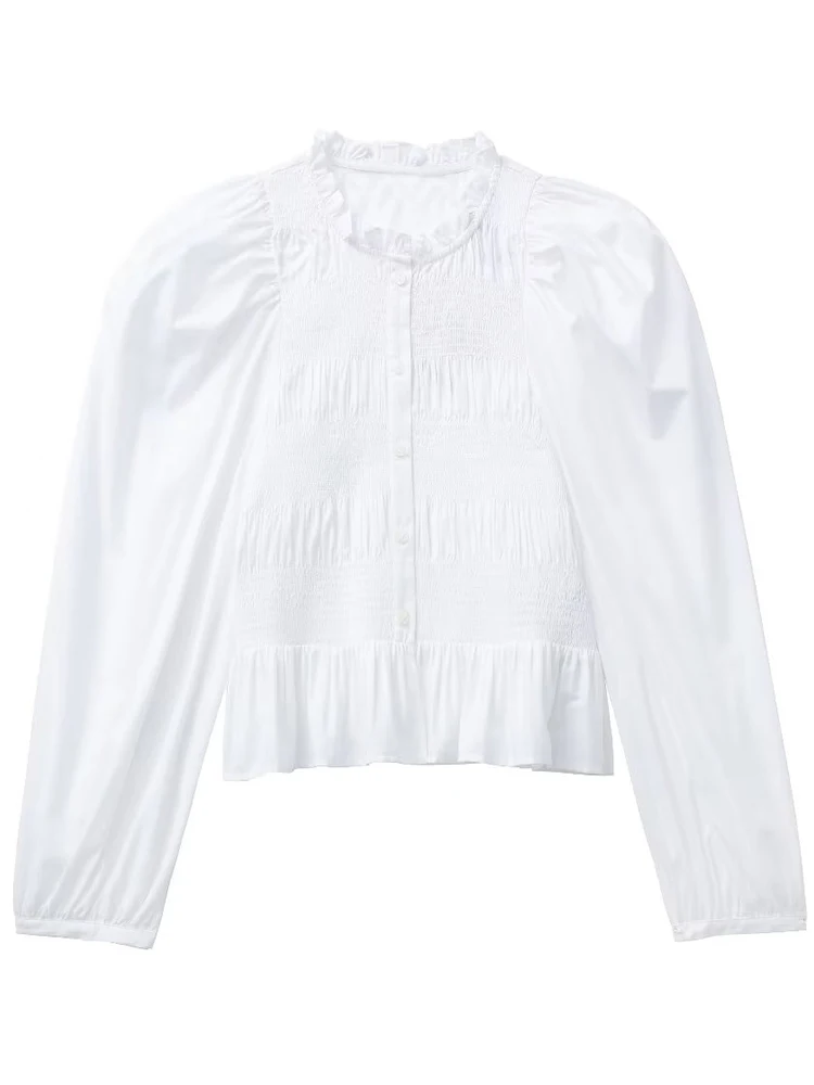 Willshela Женская модная белая однобортная укороченная блузка в винтажном стиле с круглым вырезом и длинными рукавами, женские шикарные рубашк...