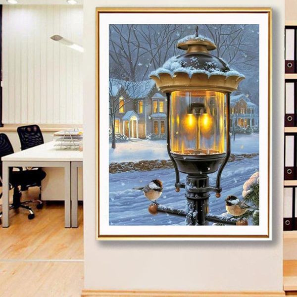diamond painting diy 5d bird on street light cross stitch full embroidery winter landscape mosaic picture of rhinestones