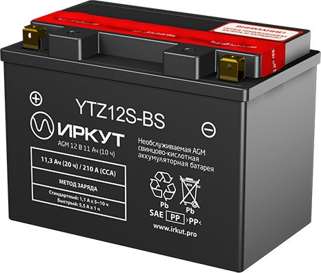 Мотоциклетный аккумулятор Иркут YTZ12S-BS (11 А·ч)