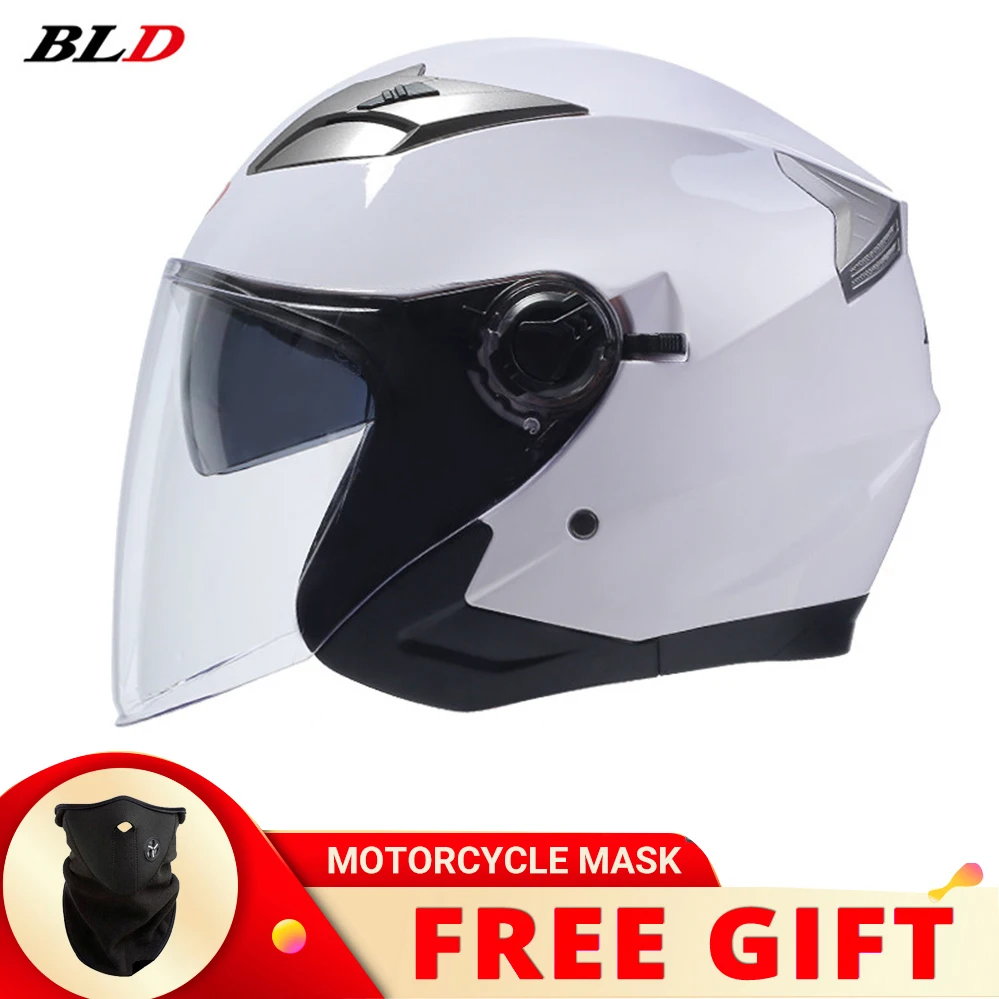 Мотоциклетный шлем с открытым лицом, двойная линза, для езды на мотоцикле и велосипеде