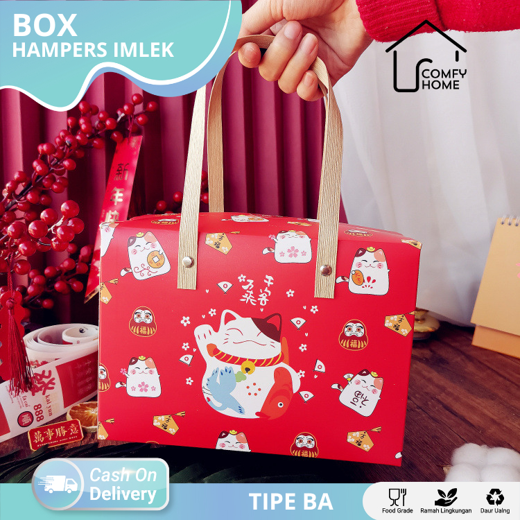 Box Hampers Imlek CNY / Paper Bag Imlek Chinese New Year Motif Lucky Cat / Kotak Cookies Edisi Imlek Motif Kucing / Box Kue Imlek / Box Imlek Dus hamper Dus Imlek Box chinese new year Box kue imlek kotak imlek sinciaI BA07-BA11