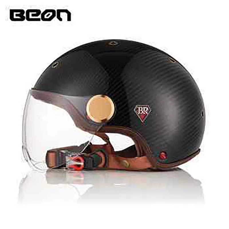 Мотоциклетный шлем BEON BR13, винтажный шлем из углеродного волокна в стиле ретро, с открытым лицом
