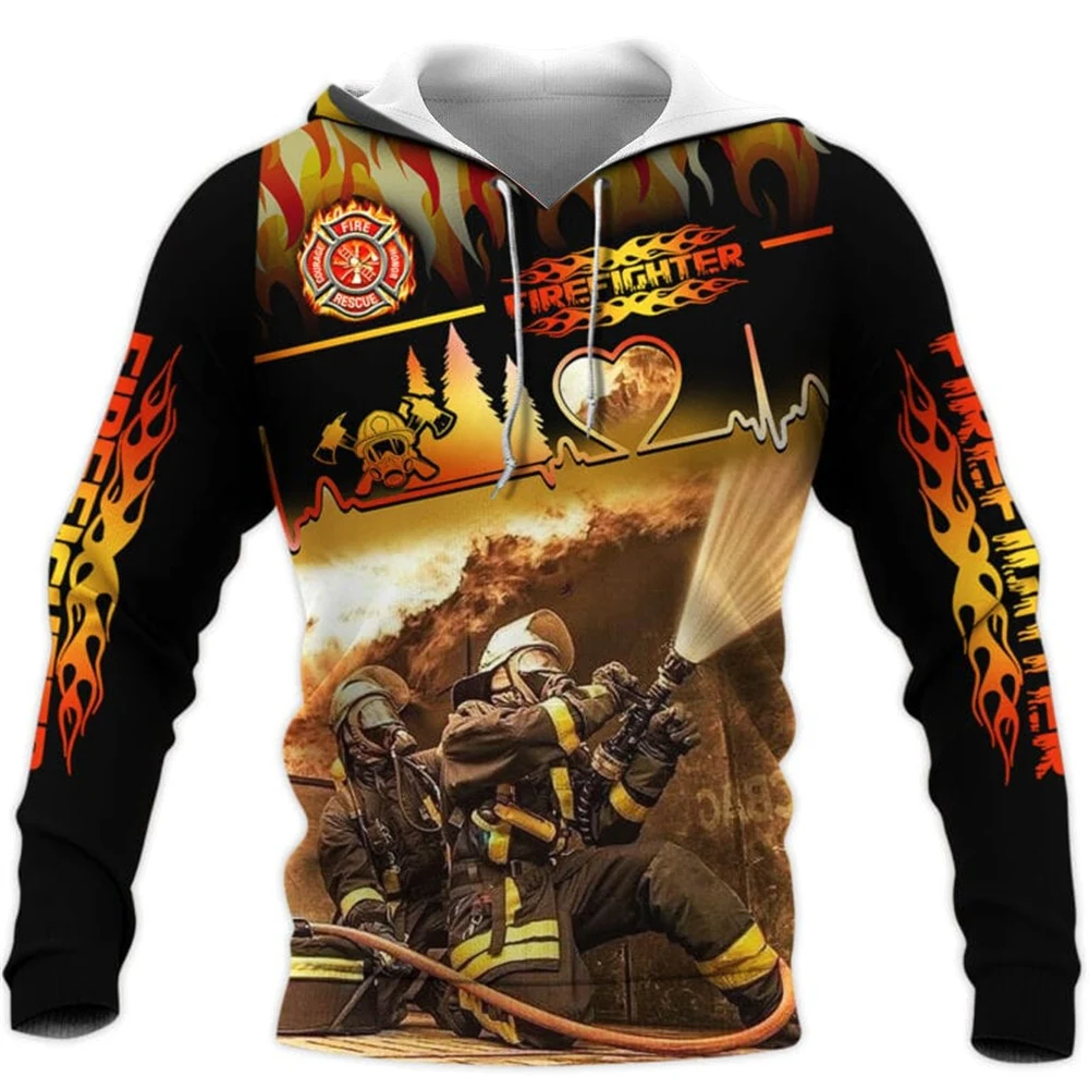 CLOOCL Men Hoodie Firefighter Badge 3D Graphics Printed Women Sweatshirt Long Sleeves Jacket Coat Hooded Gothic Pullovers