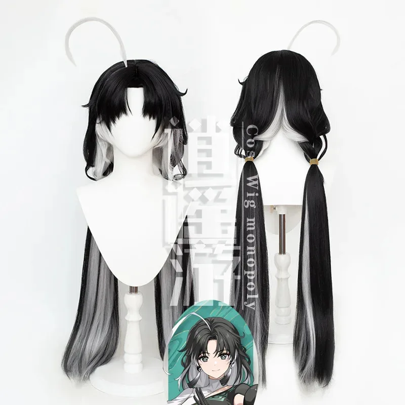 Wuthering Waves Jianxin Косплей Парик Серьги 110 см Длинные Черные Двойные Хвосты Fengyiquan Huanglong Хэллоуин Вечеринка для Женщин Опора