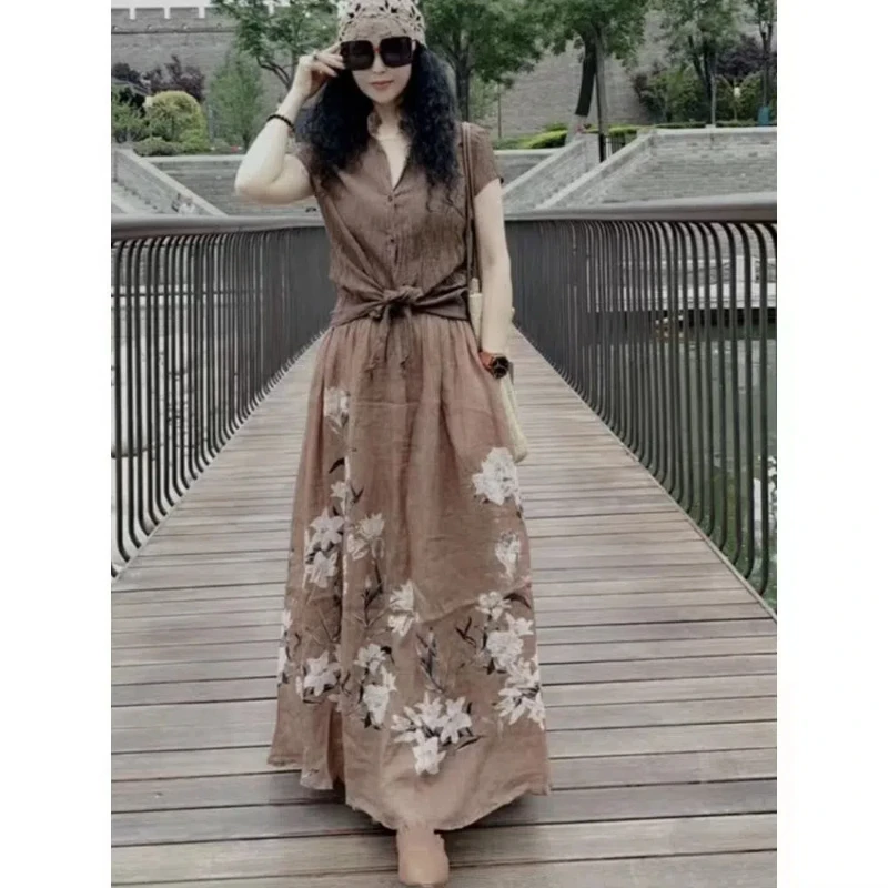 Новая летняя тонкая рубашка в этническом стиле с завязками и юбкой в стиле ретро с принтом