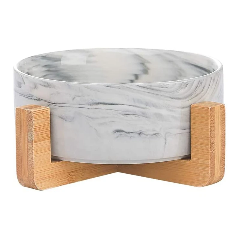 Мраморная керамическая миска для кошек и собак с деревянной подставкой, корм для домашних животных, кормушка для воды, для кошек и маленьких...