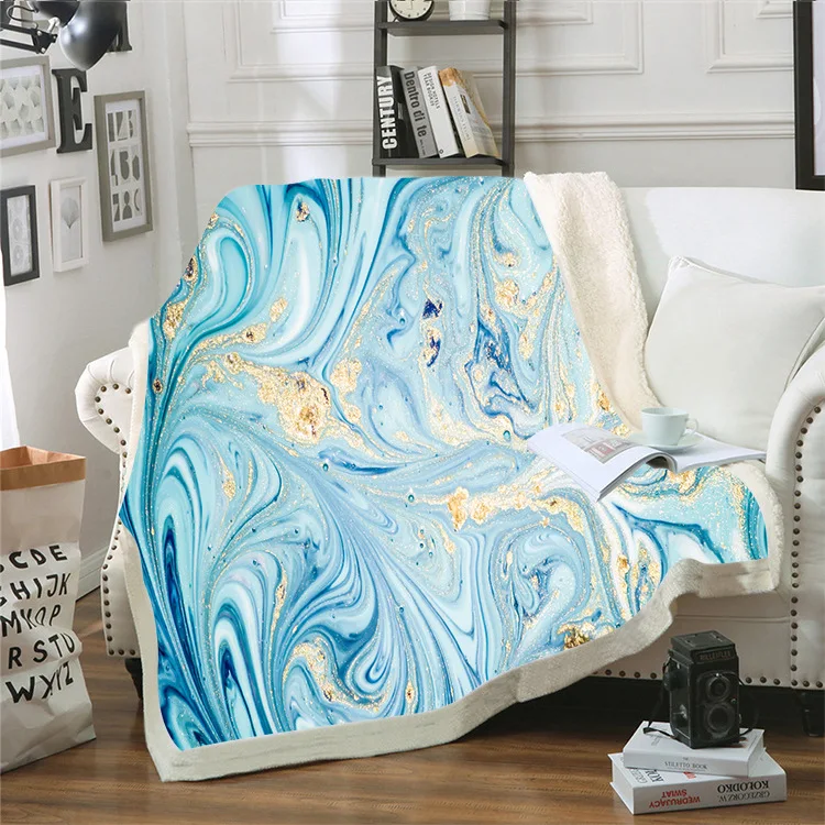Мраморное Фланелевое Флисовое одеяло, Роскошный плед с агатом, вихревым узором, синее золото, легкое удобное мягкое покрывало для кровати, д...