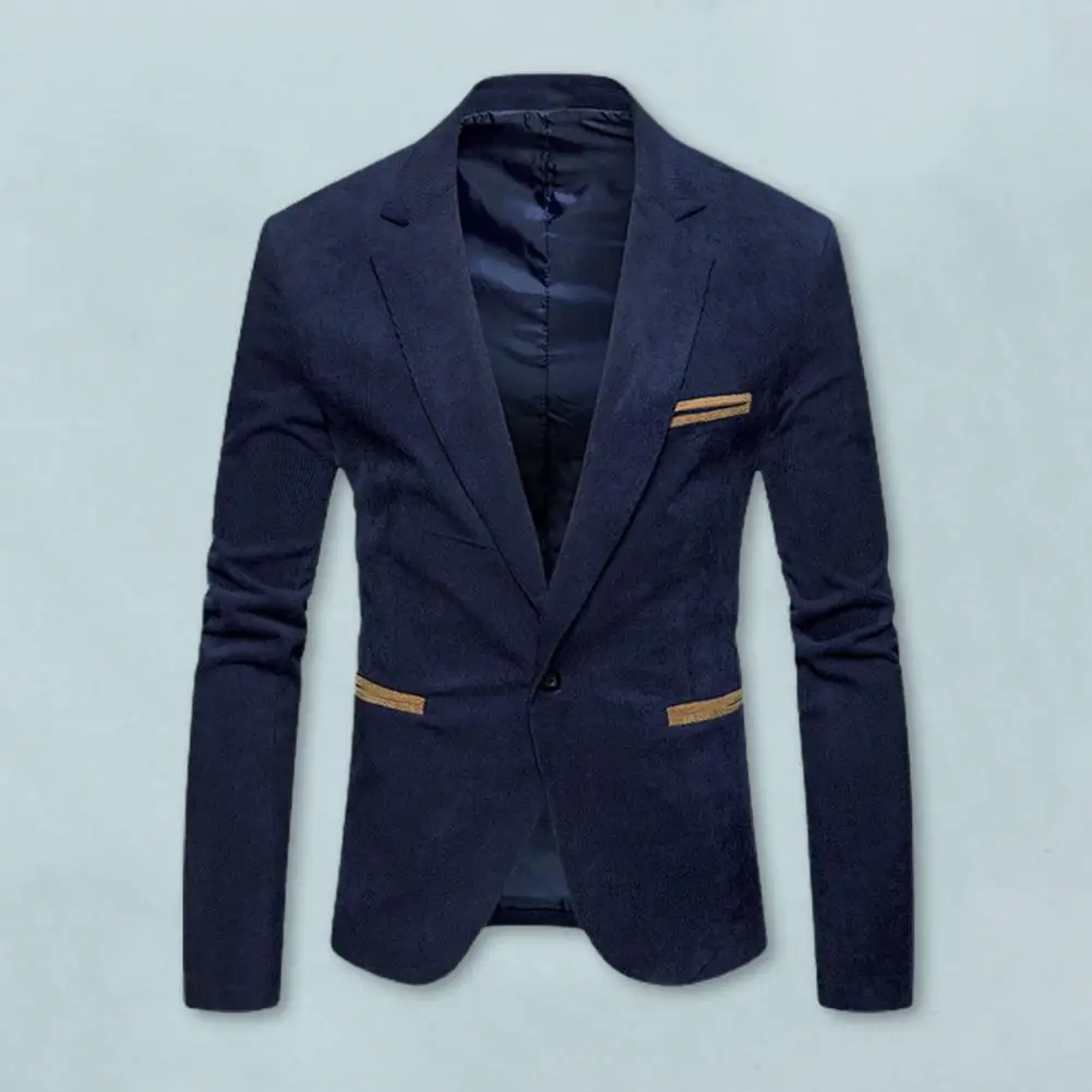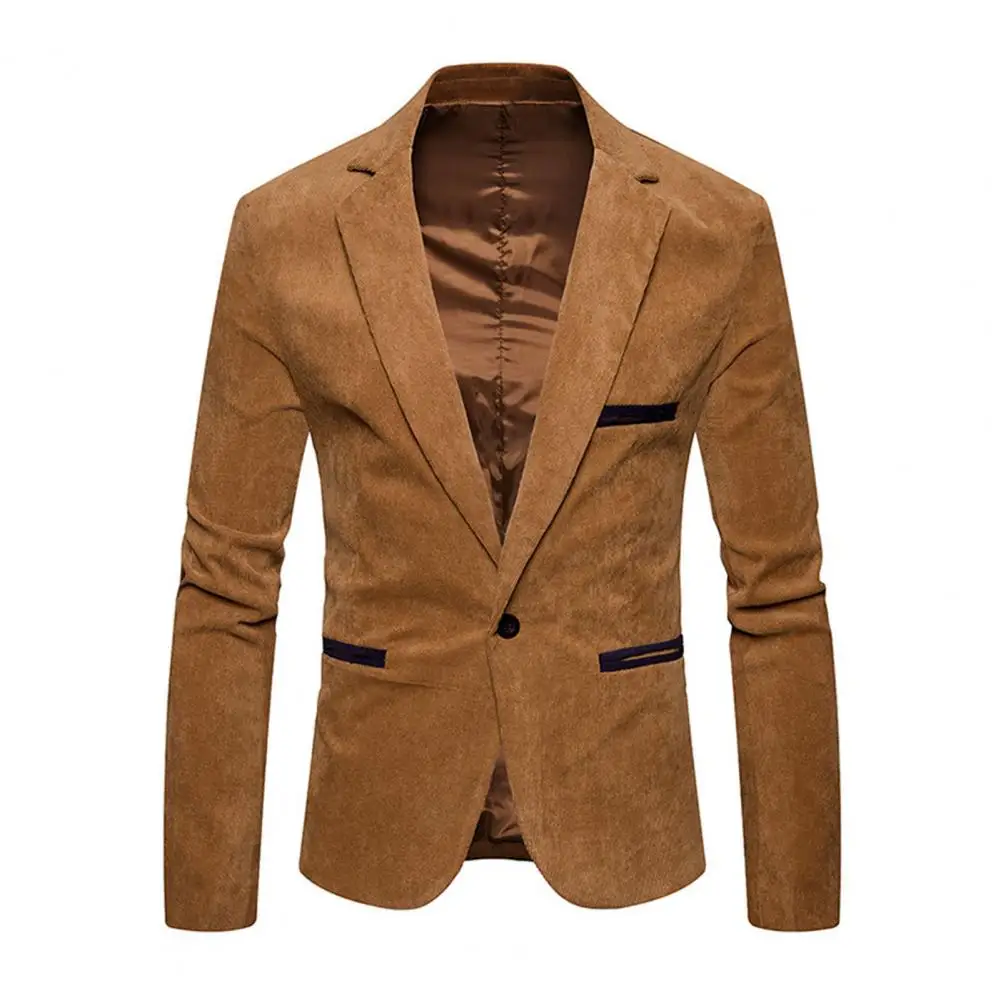 Мужская Вельветовая куртка в стиле пэчворк, с одним карманом на пуговицах