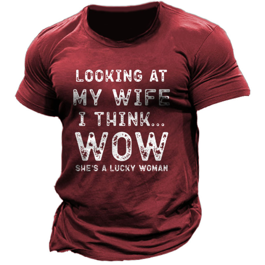 t-shirts,мужская «глядя на мою жену я думаю: вау она счастливица» с принтом на открытом воздухе повседневная футболка с короткими рукавами