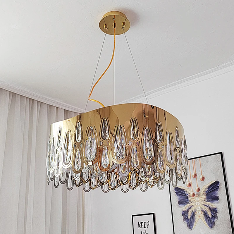 Modern Luxury K9 Raindrop Crystal Chandelier Hanging Light Lustre For Living Room Bedroom Model Dinning Room Suspension Lamp