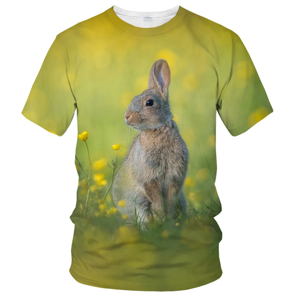 Мужская/Женская модная облегающая футболка с принтом кролика, футболка с коротким рукавом и 3D-принтом, большие размеры XXS ~ 6XL, лето 2023