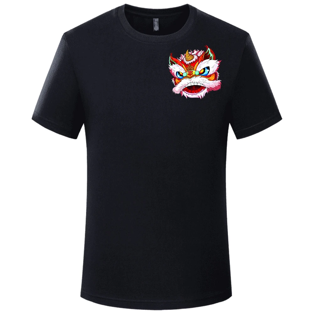 Мужская Летняя хлопковая футболка в китайском стиле для танцев с Львом, Мужская футболка с коротким рукавом и принтом, бесплатная доставка, 2023