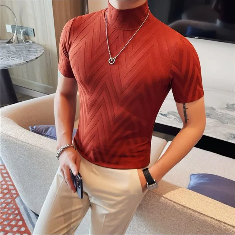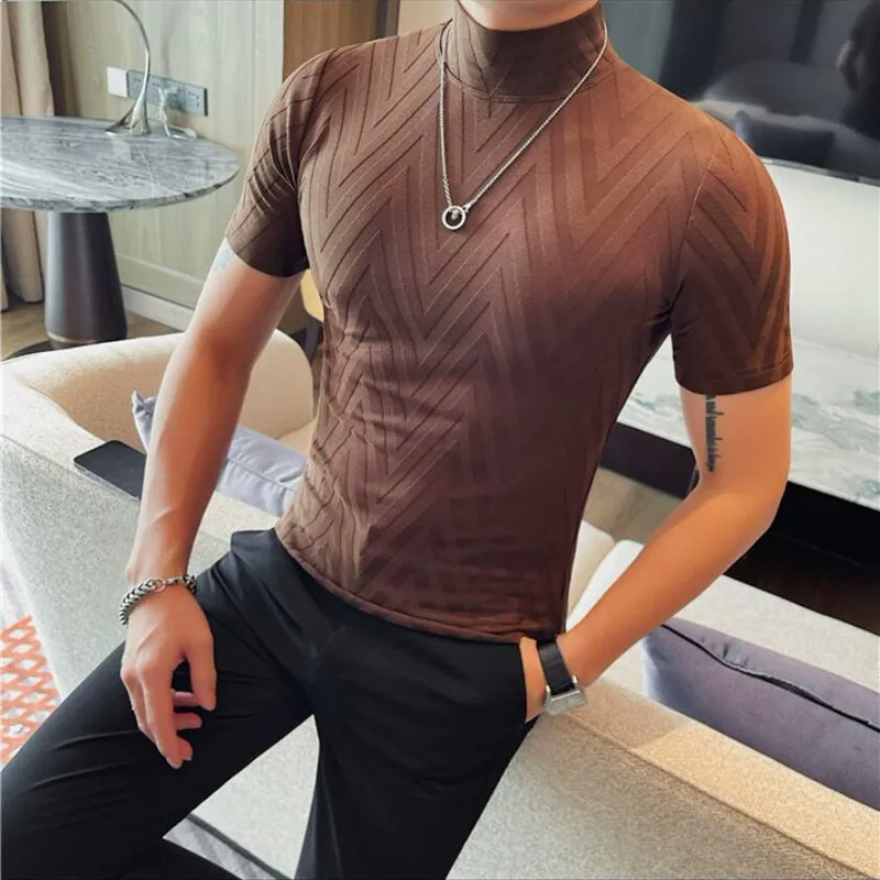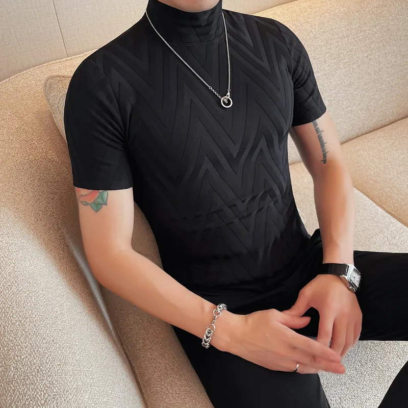 Мужская Однотонная футболка с коротким рукавом, облегающая эластичная футболка с коротким воротником, 4x l-m, лето 2024