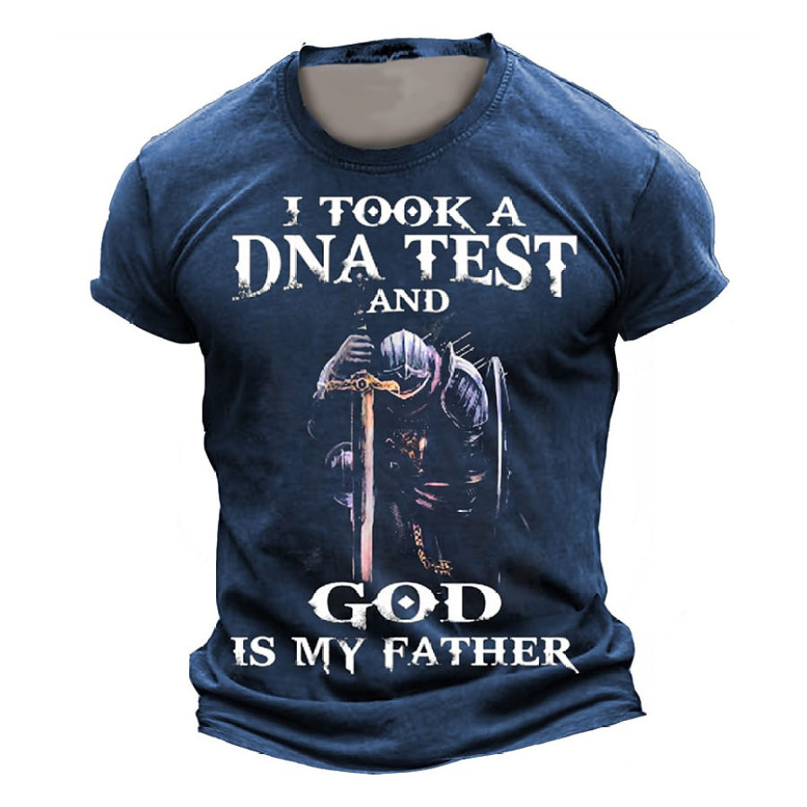 Мужская Тамплиер. Я прошел тест на ДНК. Бог мой отец. С принтом. На открытом воздухе. Повседневная футболка с коротким рукавом.