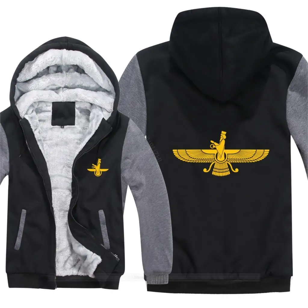 Мужская Флисовая Толстовка с капюшоном и молнией, с символами Ирана и Персии