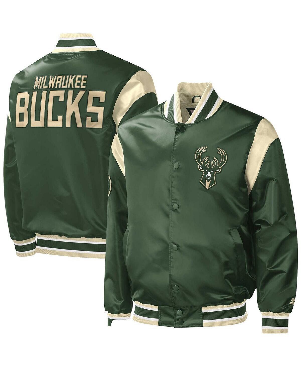 Мужская атласная университетская куртка с длинными кнопками Hunter Green Milwaukee Bucks Force Play Starter