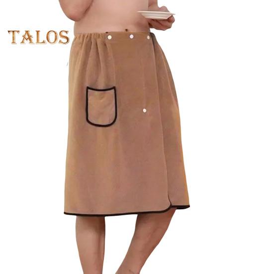 Мужская банная юбка-полотенце с карманом из кораллового флиса, быстро впитывающее, регулируемое по талии полотенце с застежкой на пуговицы, полотенца для сауны, мужские халаты для спортзала, спа, пляжа света загар