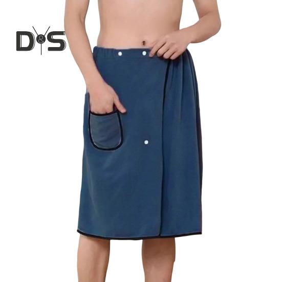Мужская банная юбка-полотенце с карманом из кораллового флиса, быстро впитывающее, регулируемое по талии полотенце с застежкой на пуговицы, полотенца для сауны, мужские халаты для спортзала, спа, пляжа темно-синий