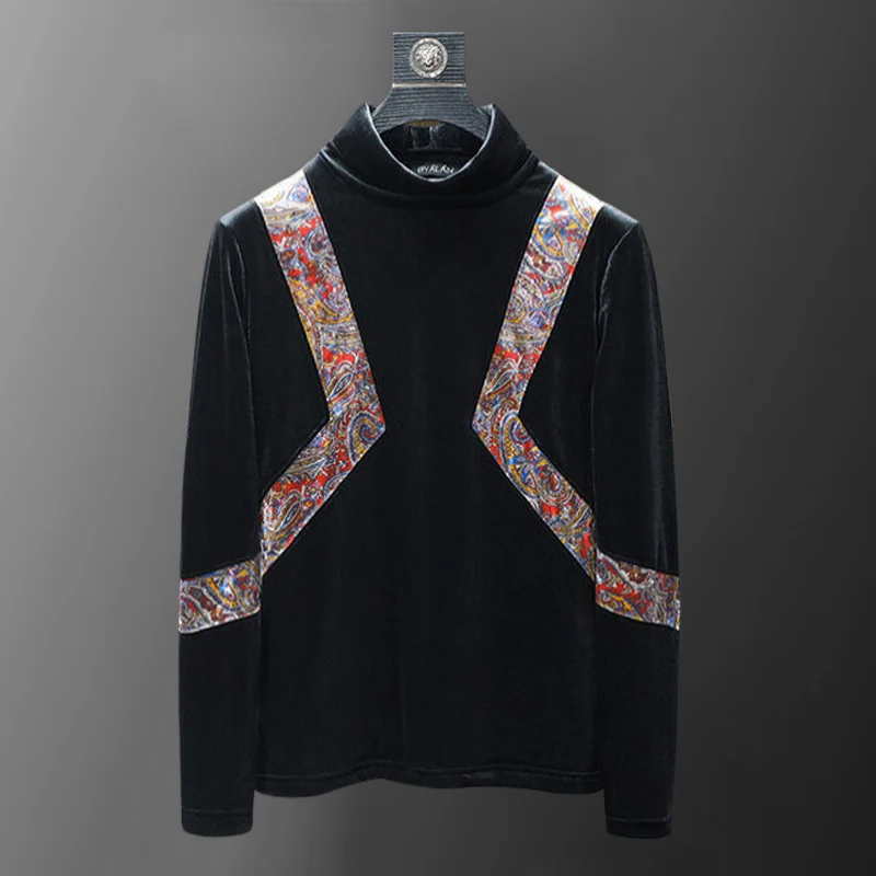 Мужская бархатная Водолазка с длинным рукавом, с принтом в этническом стиле
