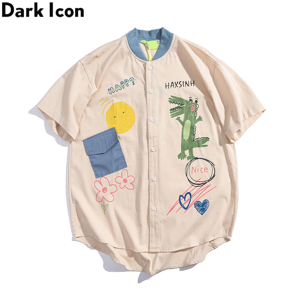 Мужская бейсбольная рубашка Dark Icon с мультяшным принтом, Новое поступление лета 2022, мужская рубашка в стиле преппи
