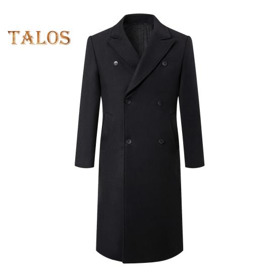 Мужская ветровка, костюм, воротник, длинный рукав, двубортное утолщенное шерстяное пальто, однотонный цвет, карманы, дизайн, верхняя одежда средней длины XXXL чёрный